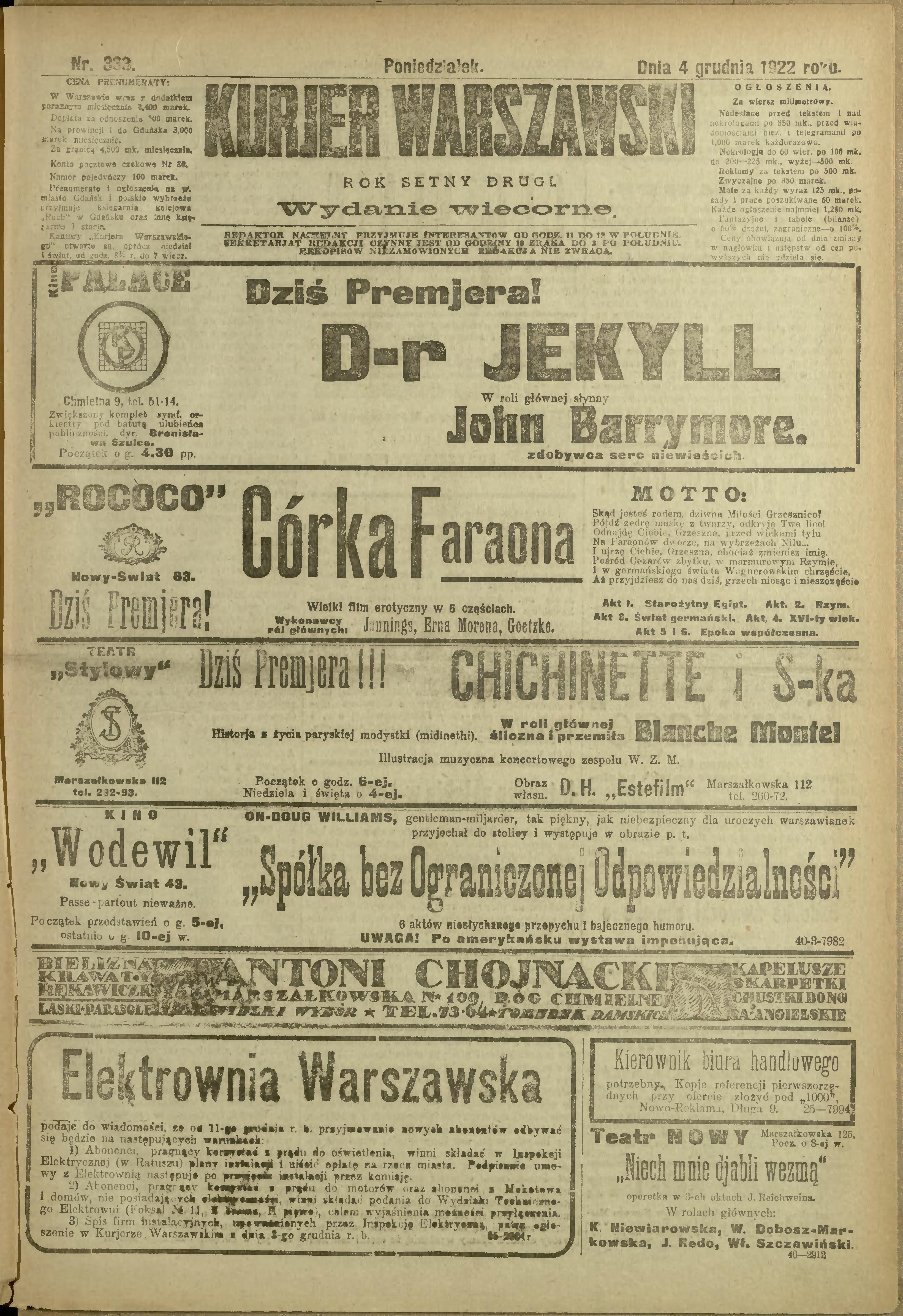 Strona główna › Artykuły › Kurier Warszawski, wydanie wieczorne, 4 grudnia 1922