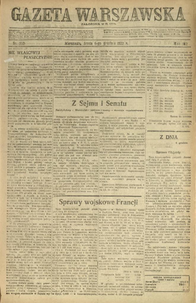 • Gazeta Warszawska [20 grudnia 1922]