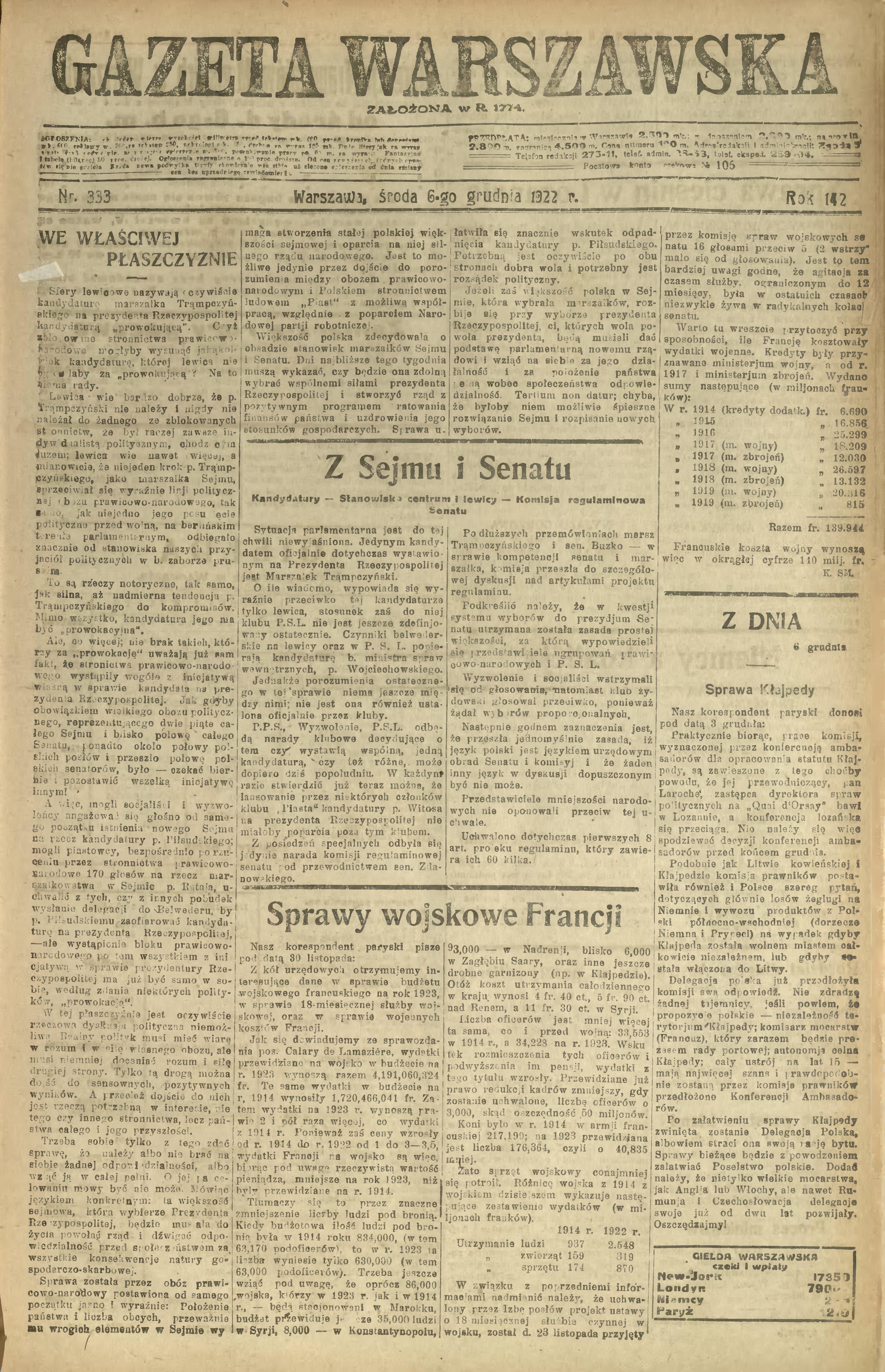 Gazeta Warszawska, 6 grudnia 1922