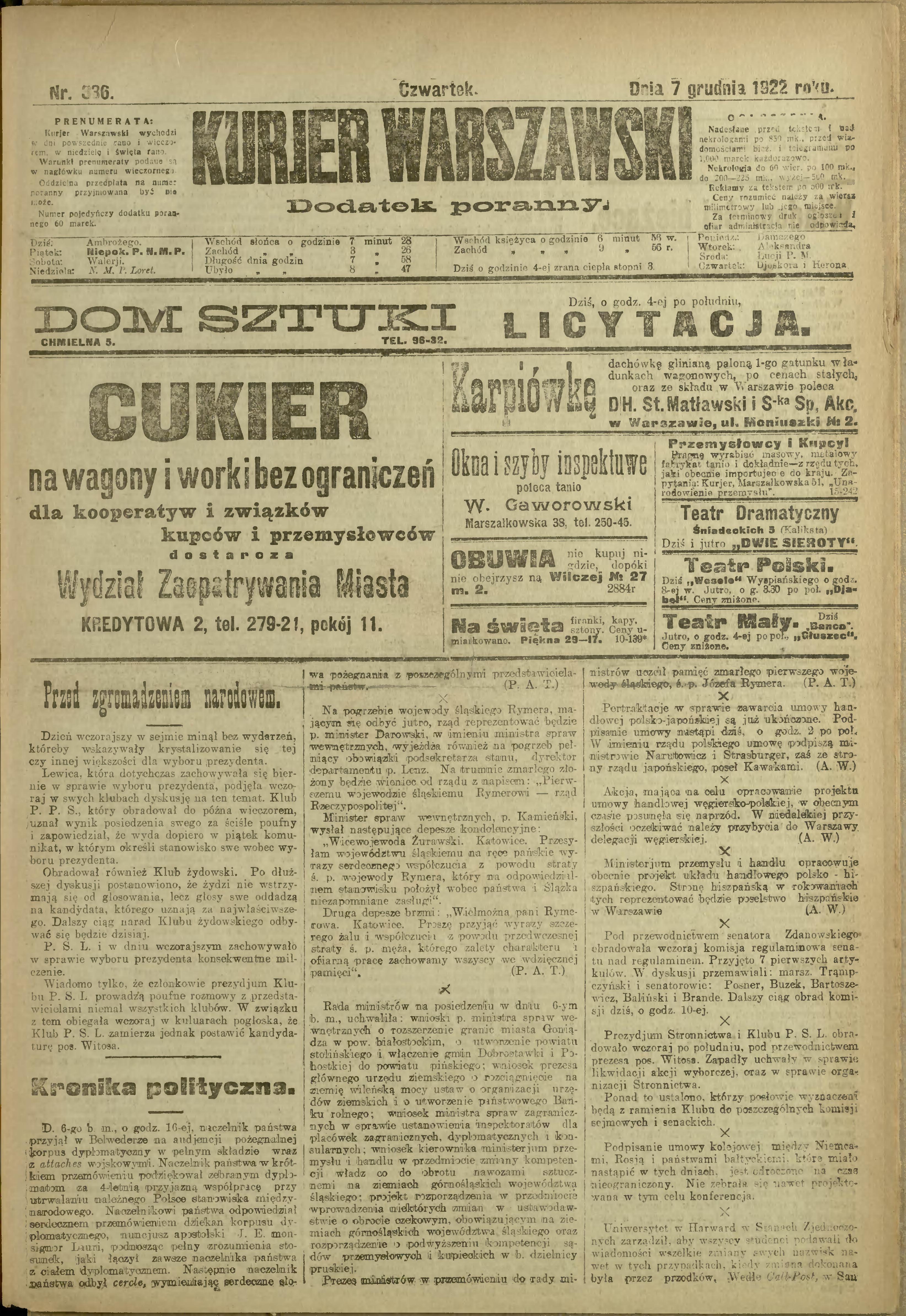 Kurier Warszawski, dodatek poranny, 7 grudnia 1922